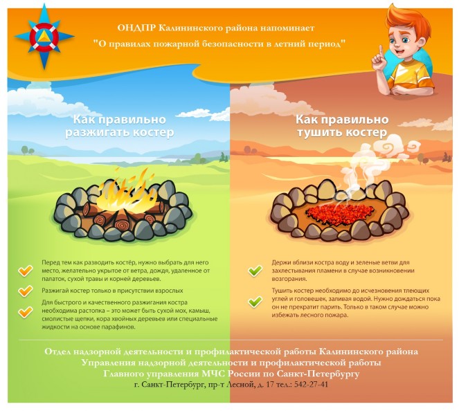 ОНДПР Калининского района УНДПР Главного управления МЧС России по Санкт-Петербургу призывает петербуржцев и гостей города к строгому соблюдению правил пожарной безопасности, где бы то ни было: на дачных участках, в парковых зонах и лесных массивах.